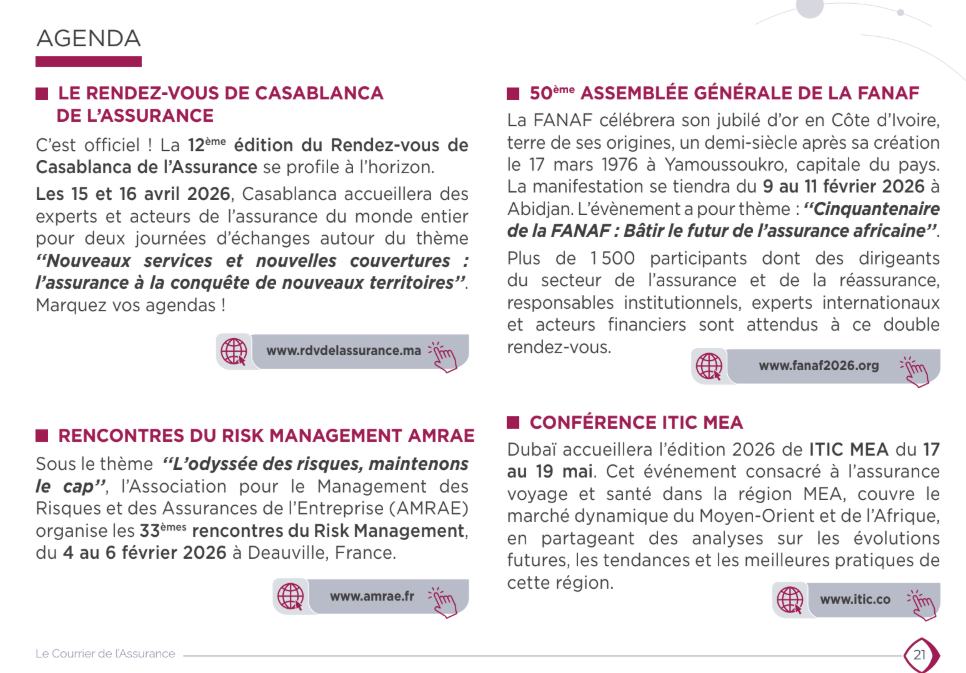 La FMA, comme pour chaque Lettre de l’Assurance, met également en ligne l’agenda à venir: